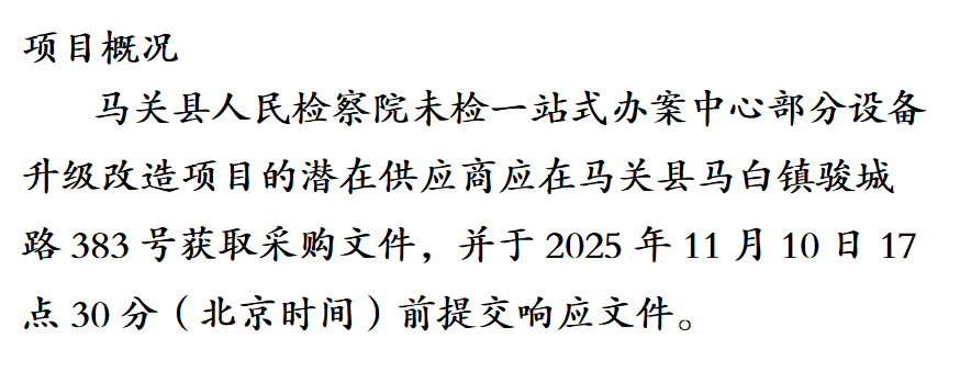 采购需求:对马关县人民检察院未检一站式办案中心部分设备升级改造,包括采购安装同步录音录像主机、拾音器、办公桌等。