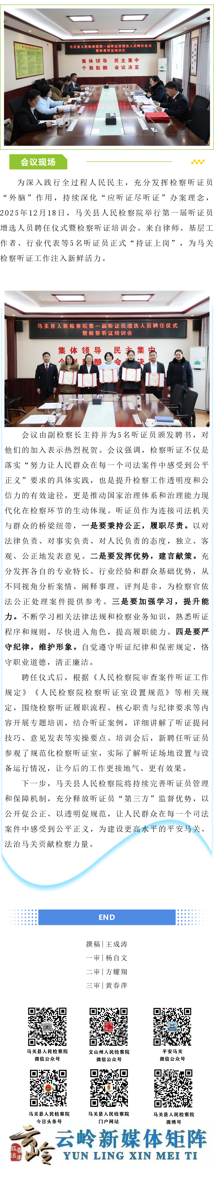 阳光检察添助力 广纳贤才促公正——马关县人民检察院举行第一届听证员增选人员聘任仪式暨检察听证培训会
